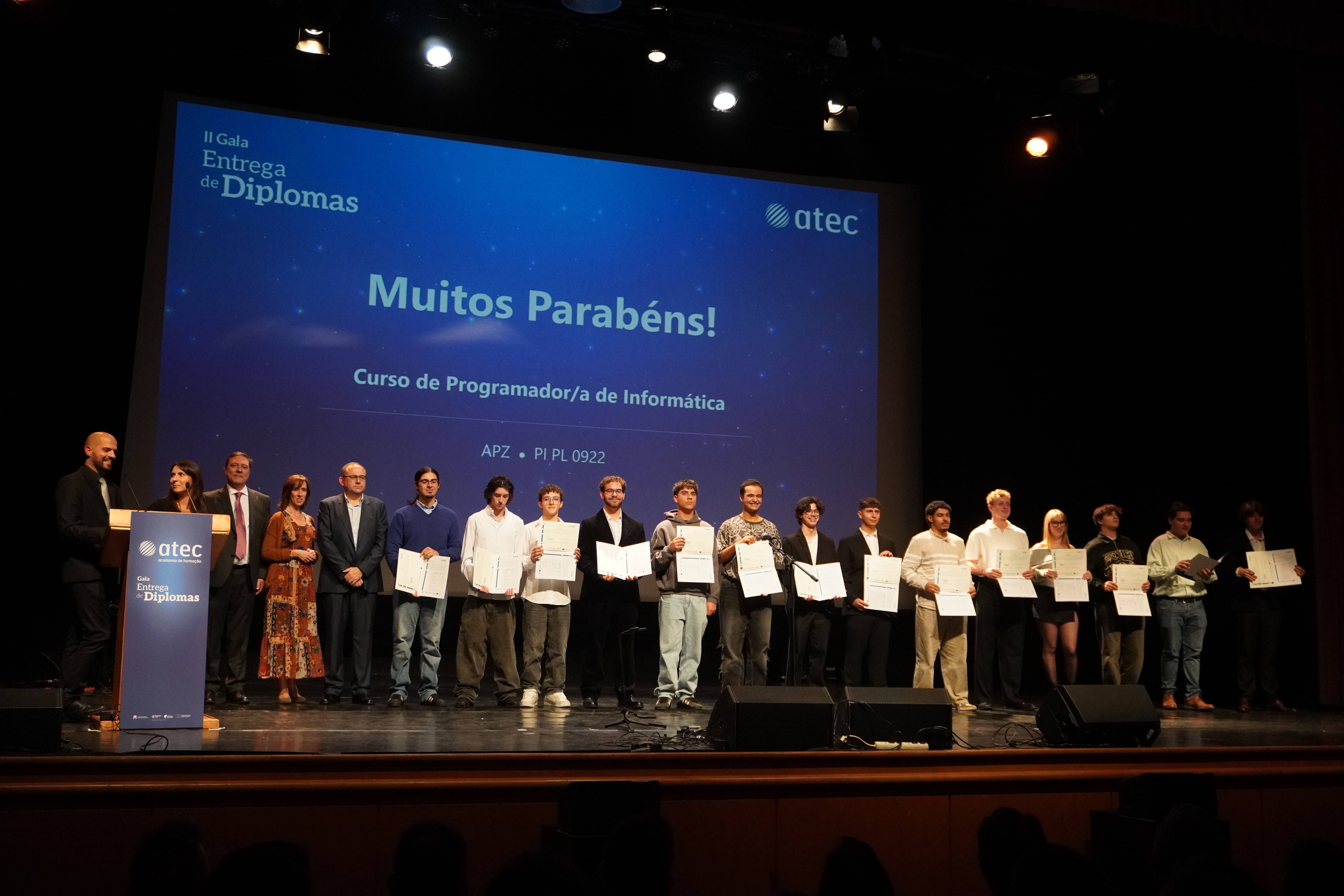 A II Gala de Entrega de Diplomas reafirma o nosso compromisso com a qualidade da formação e com o desenvolvimento de competências que preparam os nossos formandos para um futuro de sucesso. A todos os diplomados e às suas famílias, deixamos uma palavra de reconhecimento pela dedicação e pelo esforço demonstrados ao longo deste percurso.