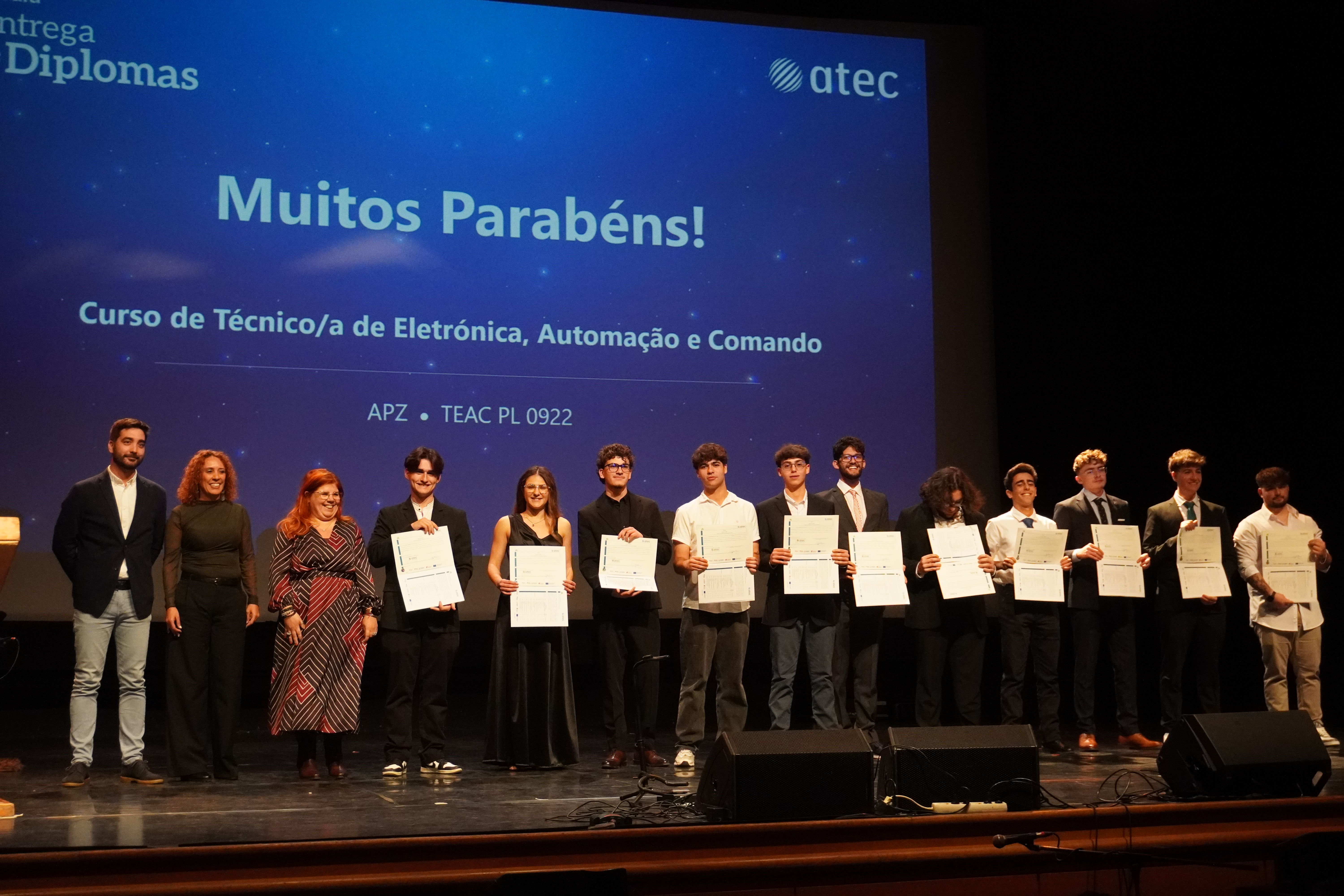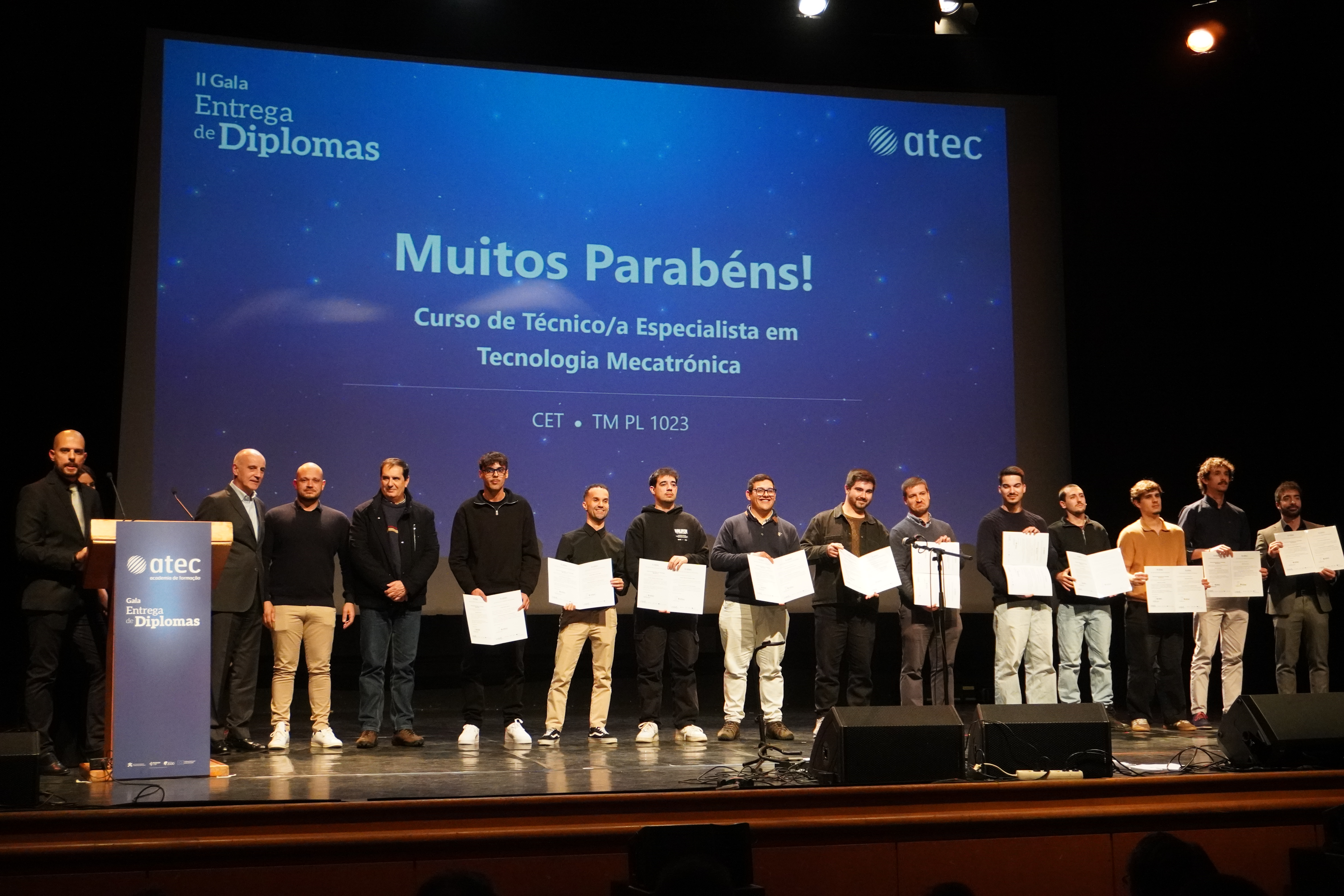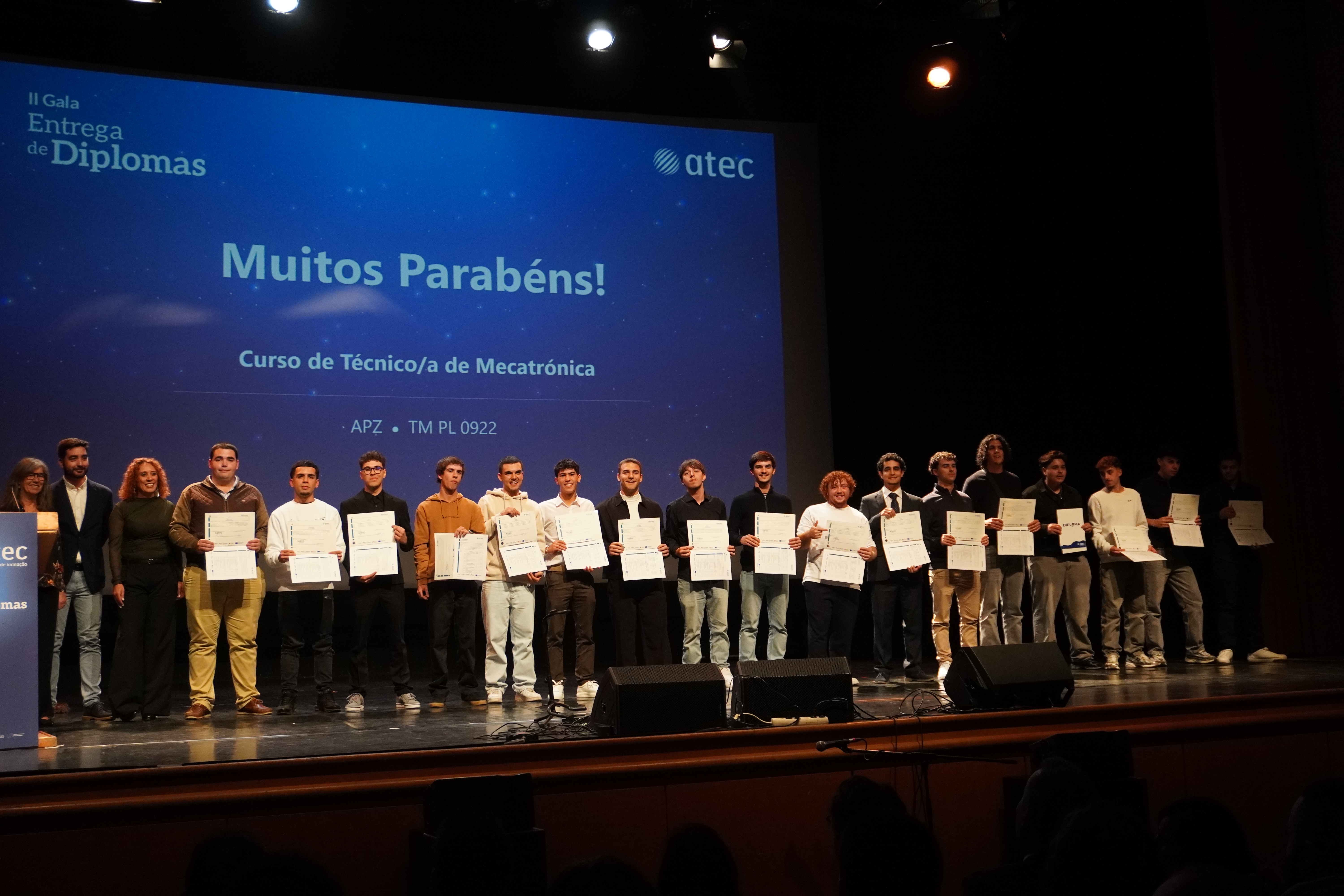 A II Gala de Entrega de Diplomas, realizada no Cine-Teatro São João, em Palmela, assinalou mais um momento de grande orgulho para a nossa comunidade formativa. A cerimónia reuniu formandos, famílias, formadores, equipa pedagógica e empresas parceiras, num ambiente de celebração e reconhecimento.