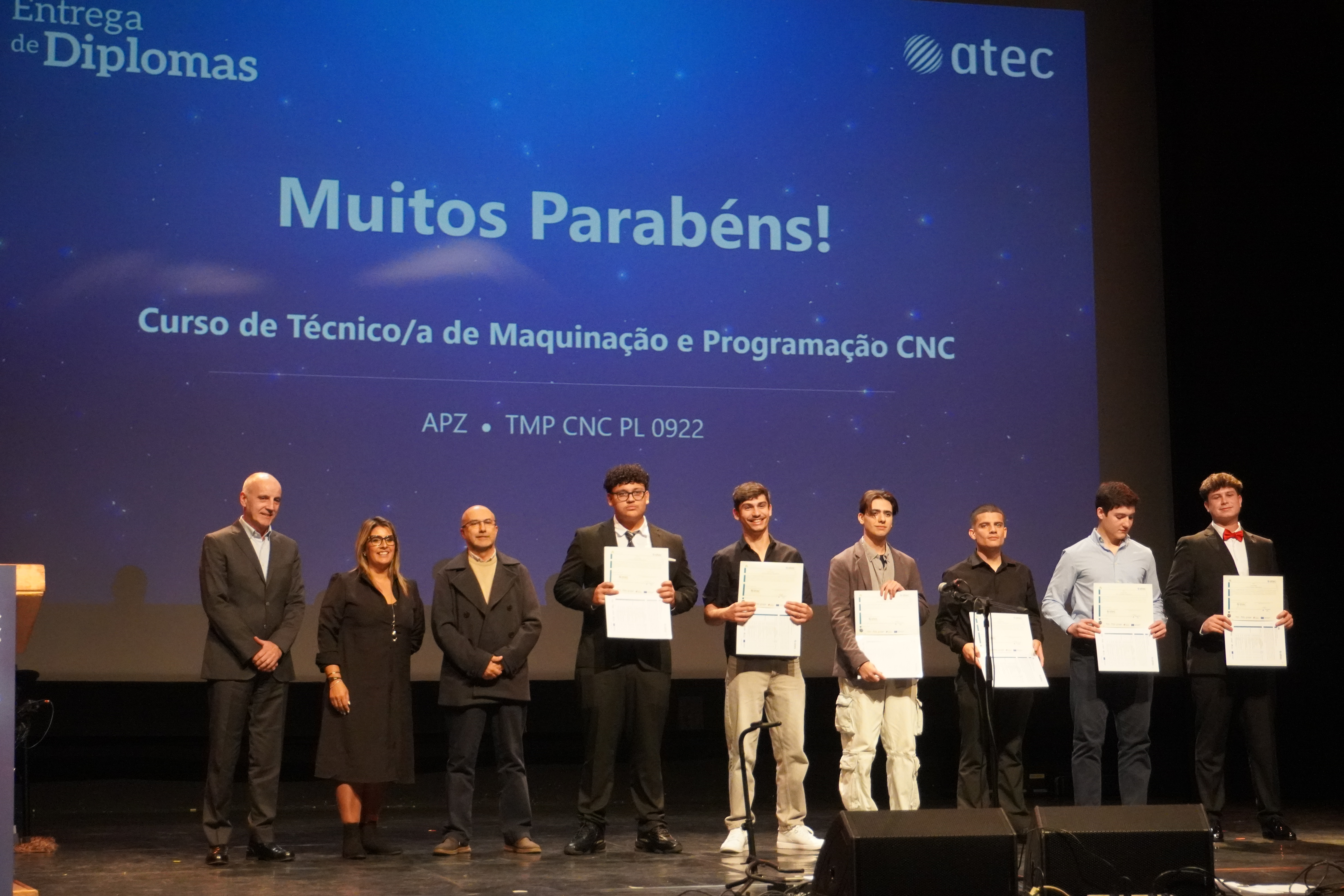 Ao longo do evento, foram entregues os diplomas aos formandos de 18 turmas, nas modalidades de Aprendizagem e de Especialização Tecnológica, que concluíram com sucesso os seus percursos formativos. Este momento simbolizou não só a conclusão de uma etapa, mas também o início de novos desafios e oportunidades para cada diplomado.